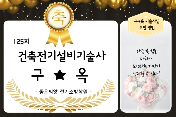 제118회 건축전기설비 구*옥 기술사님 페이지 정보 댓글 0건 조회 3,082회 작성일 70-01-01 09:00 본문 합격을 위해 노력하신 구*옥 기술사님께 밝은 미래가 함께 하기를 좋은씨앗 전기소방학원이 응원합니다.합격을 진심으로 축하드립니다. 목록 이전글제118회 건축전기설비 김*원 기술사님 19.12.10 다음글제118회 건축전기설비 박*민 기술사님 19.12.10 COMMENTS COMMENTS 등록된 댓글이 없습니다.
